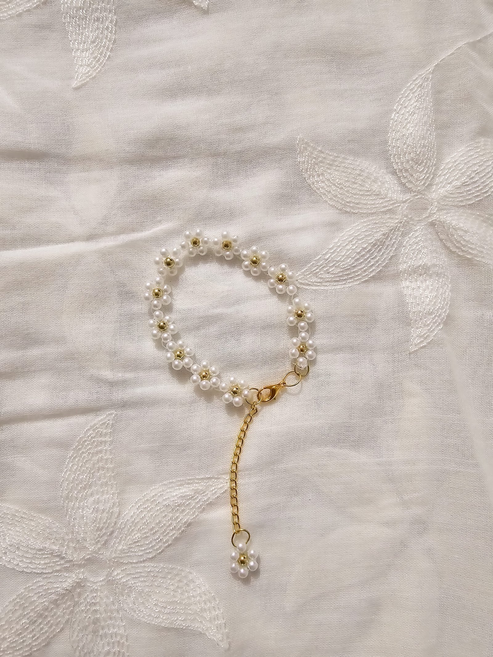Delicately handcrafted with pearls and golden accents, this piece brings timeless charm to your everyday style.